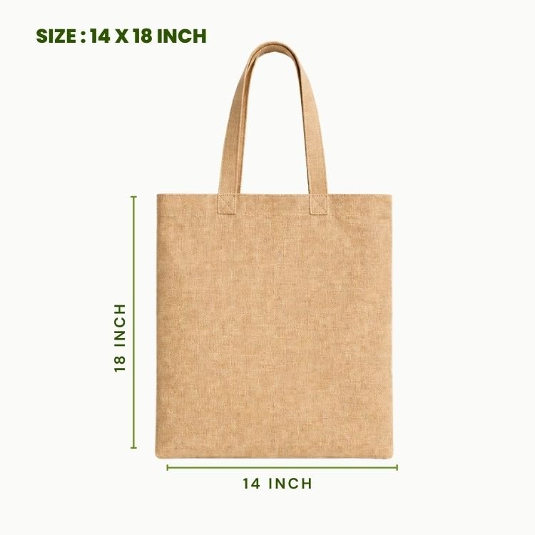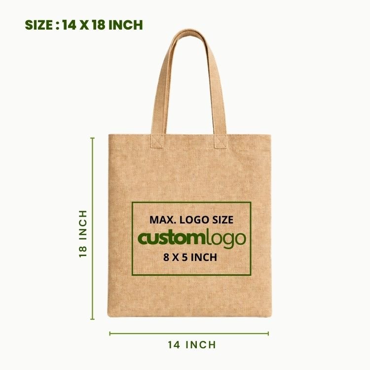 High capacity bulk jute tote bags manufacturer 14×18 inch designed using strong natural jute fibers, suitable for large product packaging, promotional distribution and eco friendly retail carry use. This tall jute tote bag provides extended storage space with an optimized front panel for bold branding.