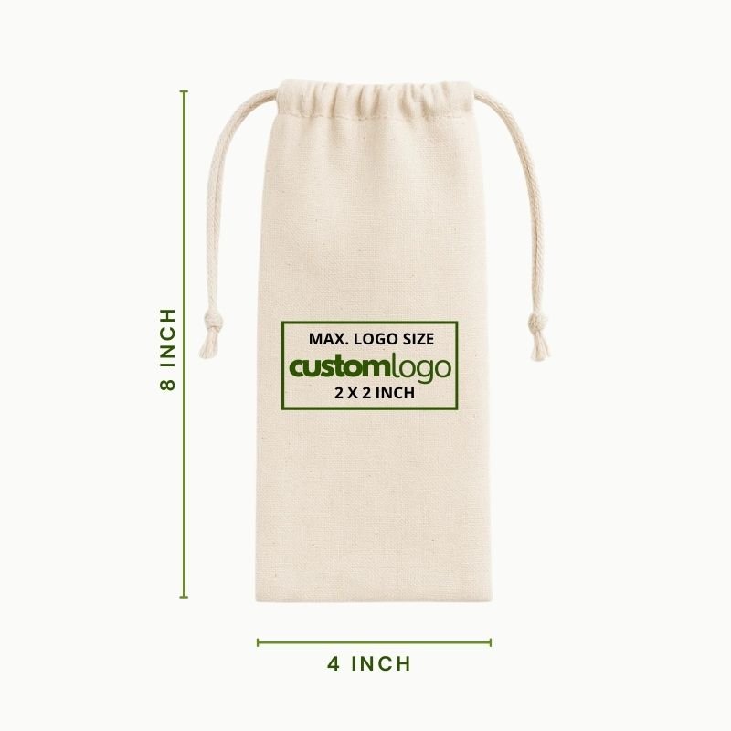 Natural Cotton Drawstring Pouch 4×8 Inch Custom Logo Packaging Bag