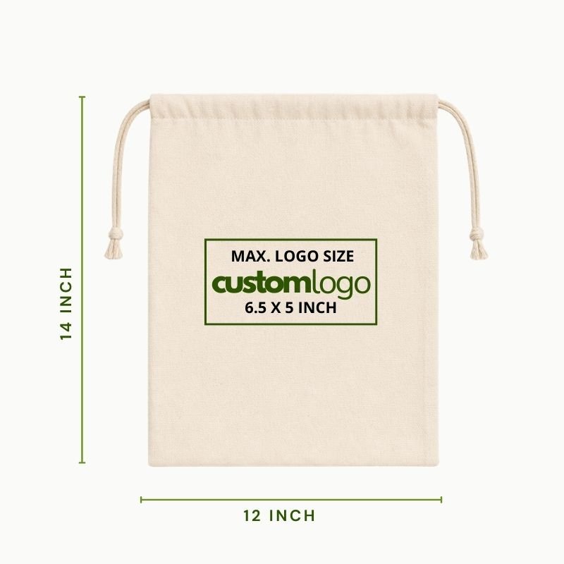 Large Canvas Cotton Drawstring Pouch 12×14 Inch Custom Logo Canvas Packaging Bag