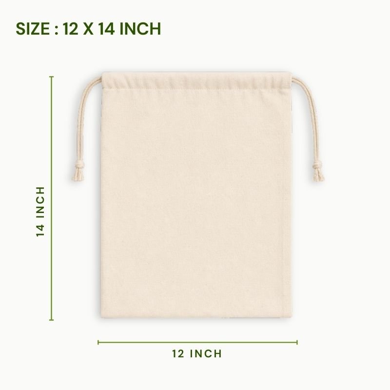 Durable large canvas cotton drawstring pouch 12×14 inch produced using premium canvas cotton fabric designed for eco friendly product packaging and reusable storage. These canvas packaging pouches are widely used for jewellery packaging, skincare products, herbal storage and sustainable brand packaging solutions.