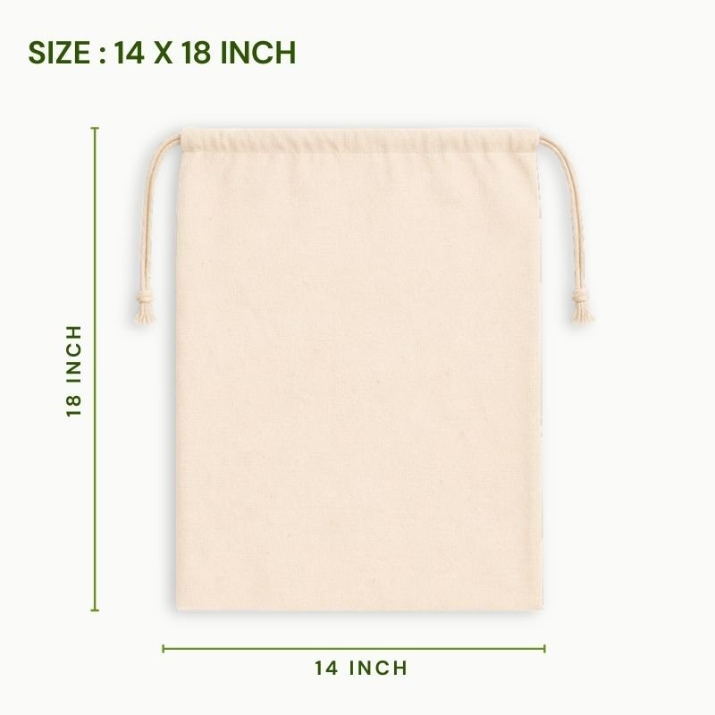 Premium large canvas drawstring bag 14×18 inch made from durable natural canvas fabric designed for reusable storage and eco friendly packaging. These canvas drawstring bags are widely used for jewellery packaging, skincare products, gift packaging and sustainable product storage.