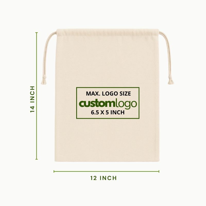 Large Cotton Drawstring Pouch 12×14 Inch Custom Logo Natural Cotton Packaging Bag