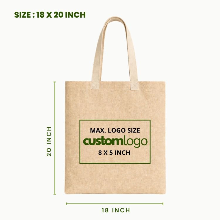 Heavy-duty large juco shopping bag manufacturer 18×20 inch designed for high-capacity usage, retail packaging and promotional branding. This oversized format provides maximum storage space along with a wide printable area for impactful logo visibility.