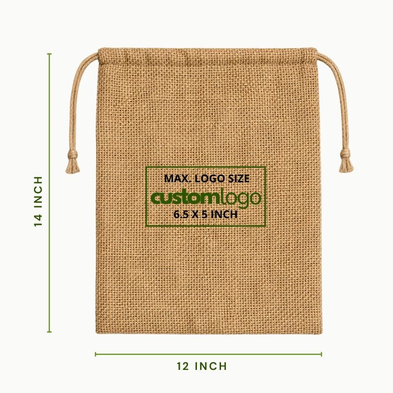 Large Jute Drawstring Bag 12×14 Inch Custom Logo Burlap Packaging Pouch